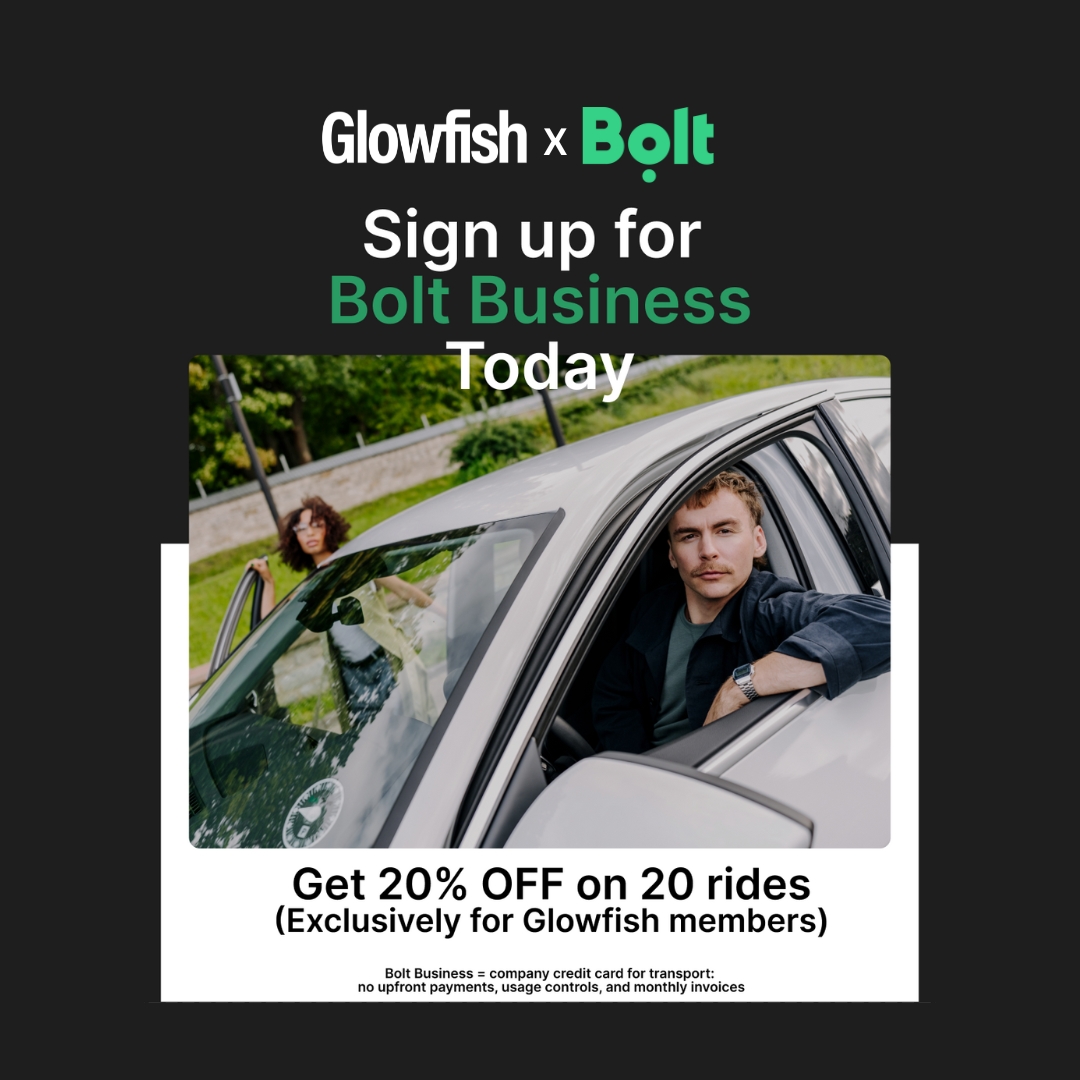 Because life at Glowfish isn’t just work — it’s a lifestyle! 🚀 That’s why we teamed up with Bolt Business to bring our members smooth rides, smart perks, and zero hassle.